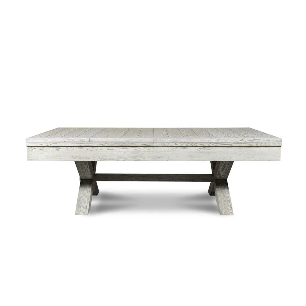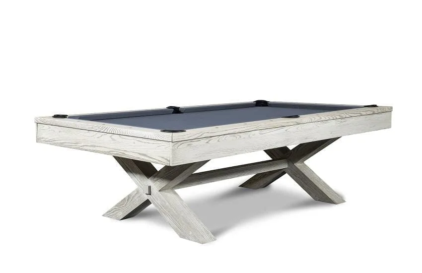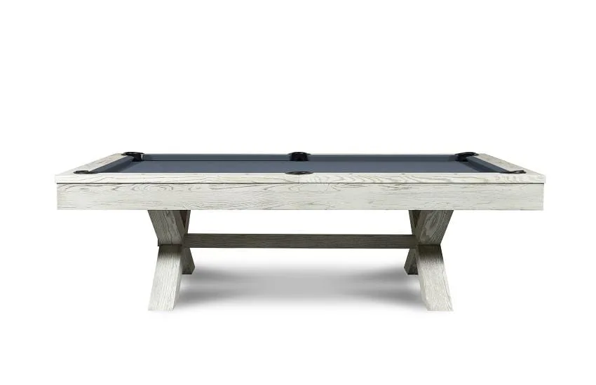 Like many of our dining room pool tables, this table combines rustic and modern design to give you a truly unique product that will fit perfectly into your space. Offering a white-washed, raised grain finish, your choice of premium felt color, and detailed finger joints in the corners, you’re sure to love this 3-in-one pool table for years and years.